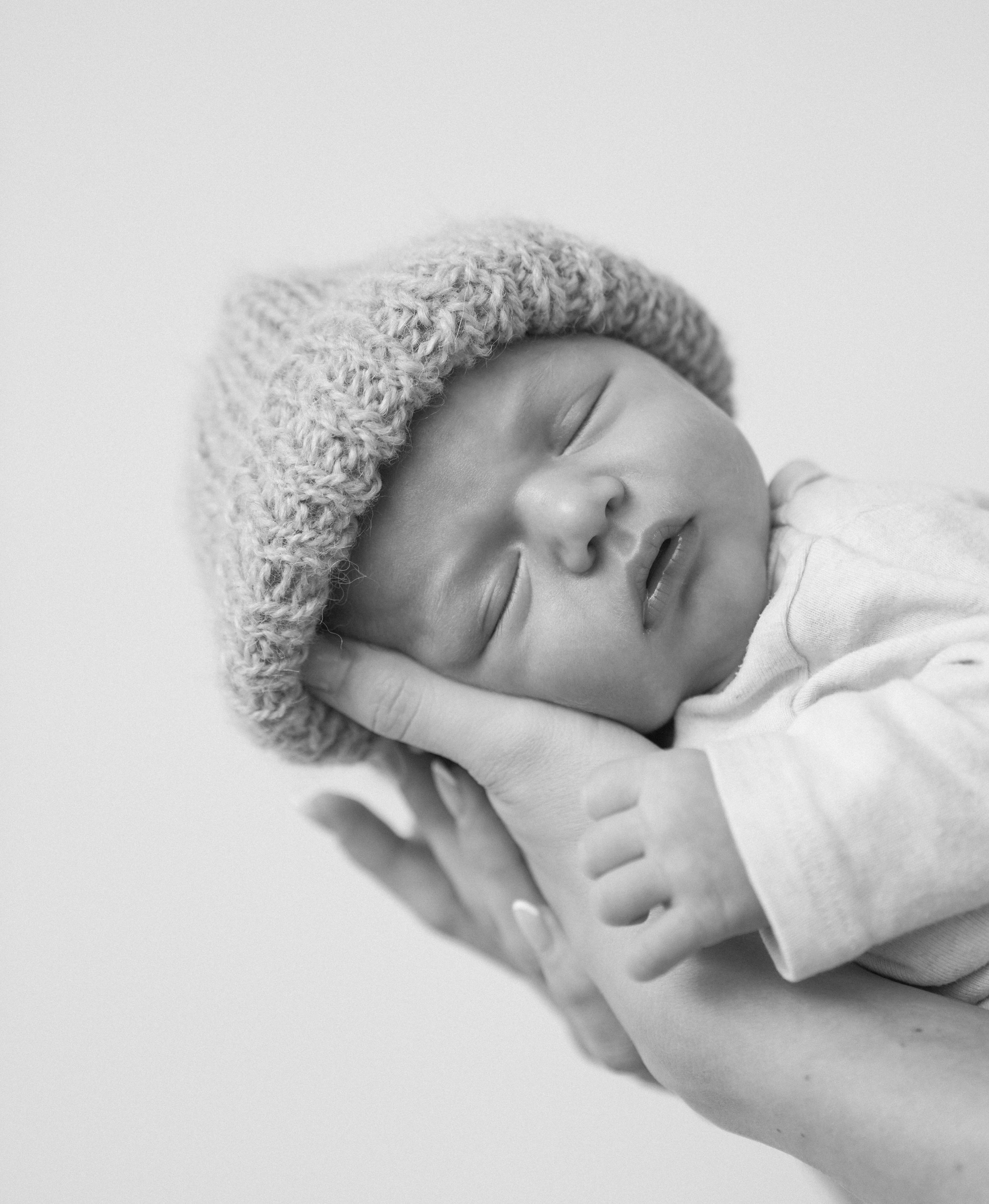 Fotoshootings eines Babys im Studio mit neutralem Hintergrund, fotografiert von Fotografin Salome Peter